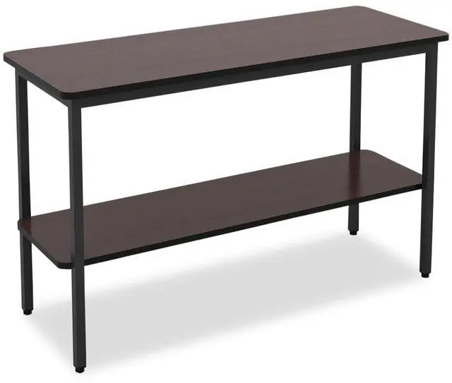 OfficeWorks One-Shelf Utility Table Rectangular 47.25" x 17.7" x 29.5" Walnut Top Black Base/Legs 69124