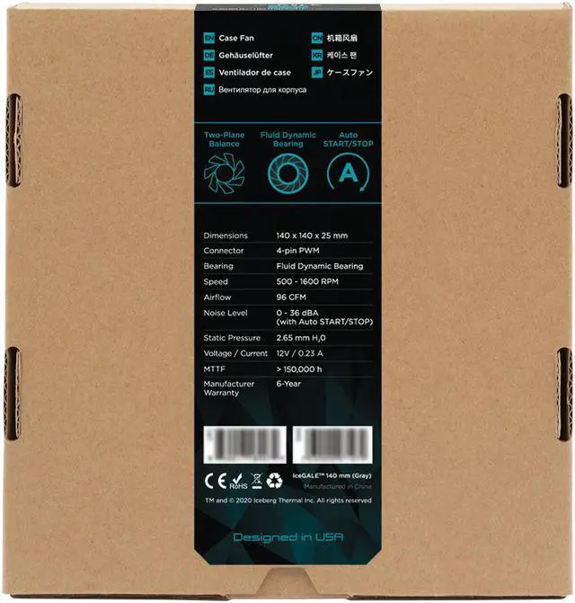 IceGALE Xtra 140 mm Case Fan Technical Specifications