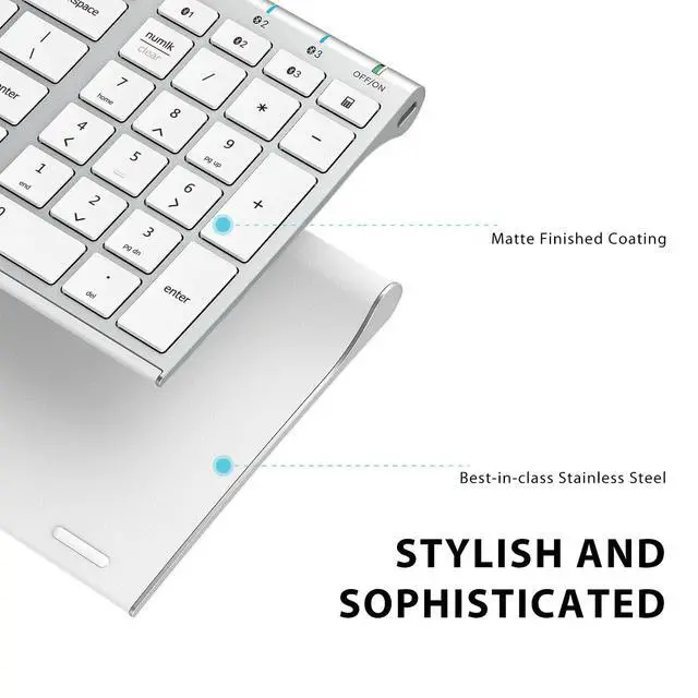 Low profile keycaps make the Bluetooth keyboard quiet to tap on, so you won't sound like you're banging away on an old typewriter