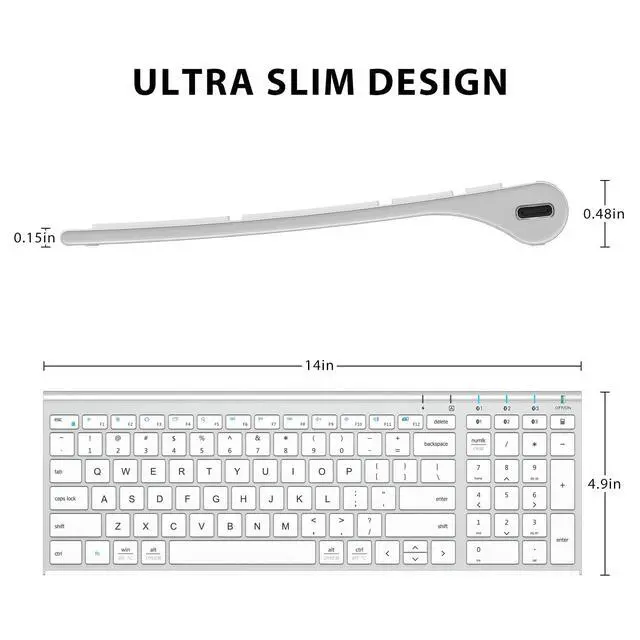 The iClever wireless keyboard is a full size slim keyboard in a Bluetooth version, works perfectly on IOS, Android, Mac and