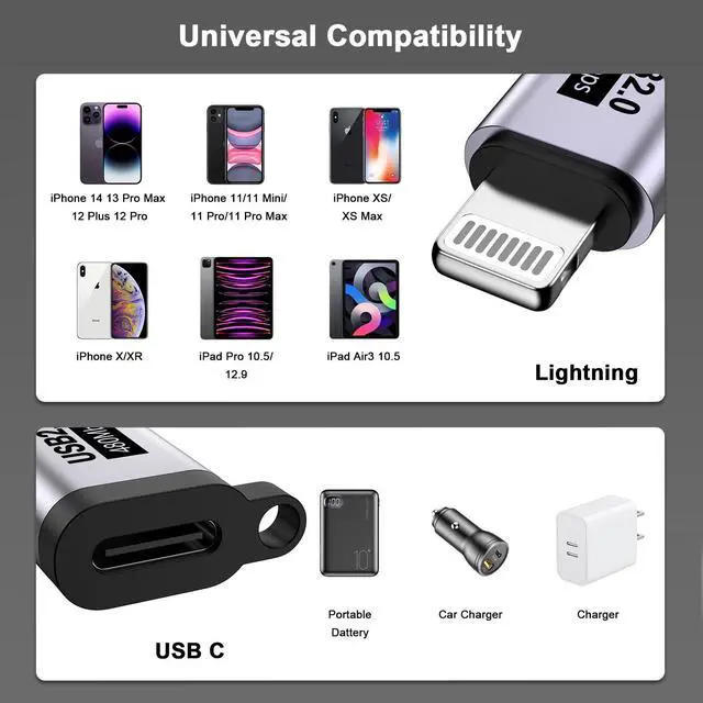 ![Main image of USB C Type C to Lightning Adapter [Apple MFi Certified] 2 Pack Lightning to Type C Fast Charging Connctor 8 Pin Charging Adapter for iPhone 14/14 Pro Max/13/13 Pro Max/13 Mini/13 Pro//iPad/8/7/6 Plus](https://c1.neweggimages.com/productimage/nb640/C688D2604210R0U5B72.jpg)
