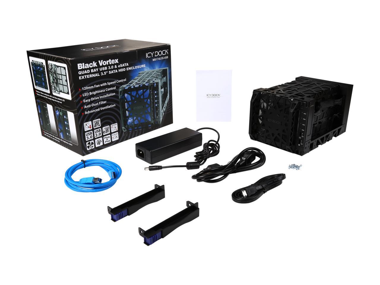 ICY DOCK 4 Bay USB 3.0/ eSATA External HDD Enclosure with 120mm Cooling Fan - Black Vortex MB174U3S-4SB
