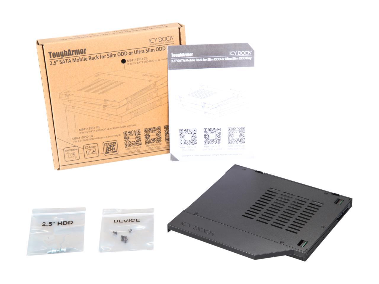 ICY DOCK ToughArmor MB411SPO-2B (Fits 9.5mm height ODD Slot) 2.5" SSD / HDD Hot-Swap SATA Mobile Rack for 9.5mm Ultra Slim CD/DVD-ROM Optical Bay
