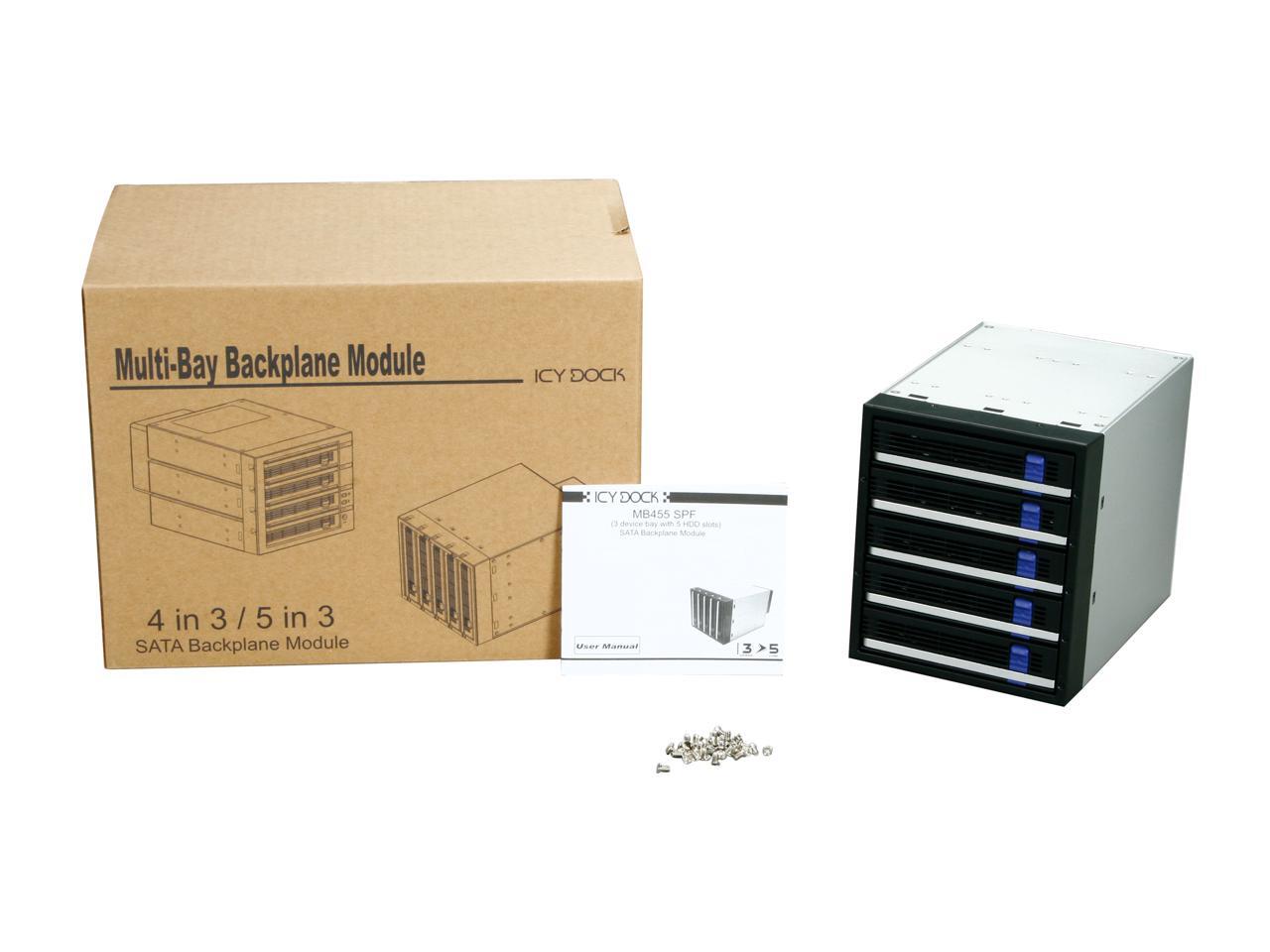 ICY DOCK MB455SPF-B 5 in 3 SATA I, II & III Hot-Swap Internal Backplane Raid Cage Module