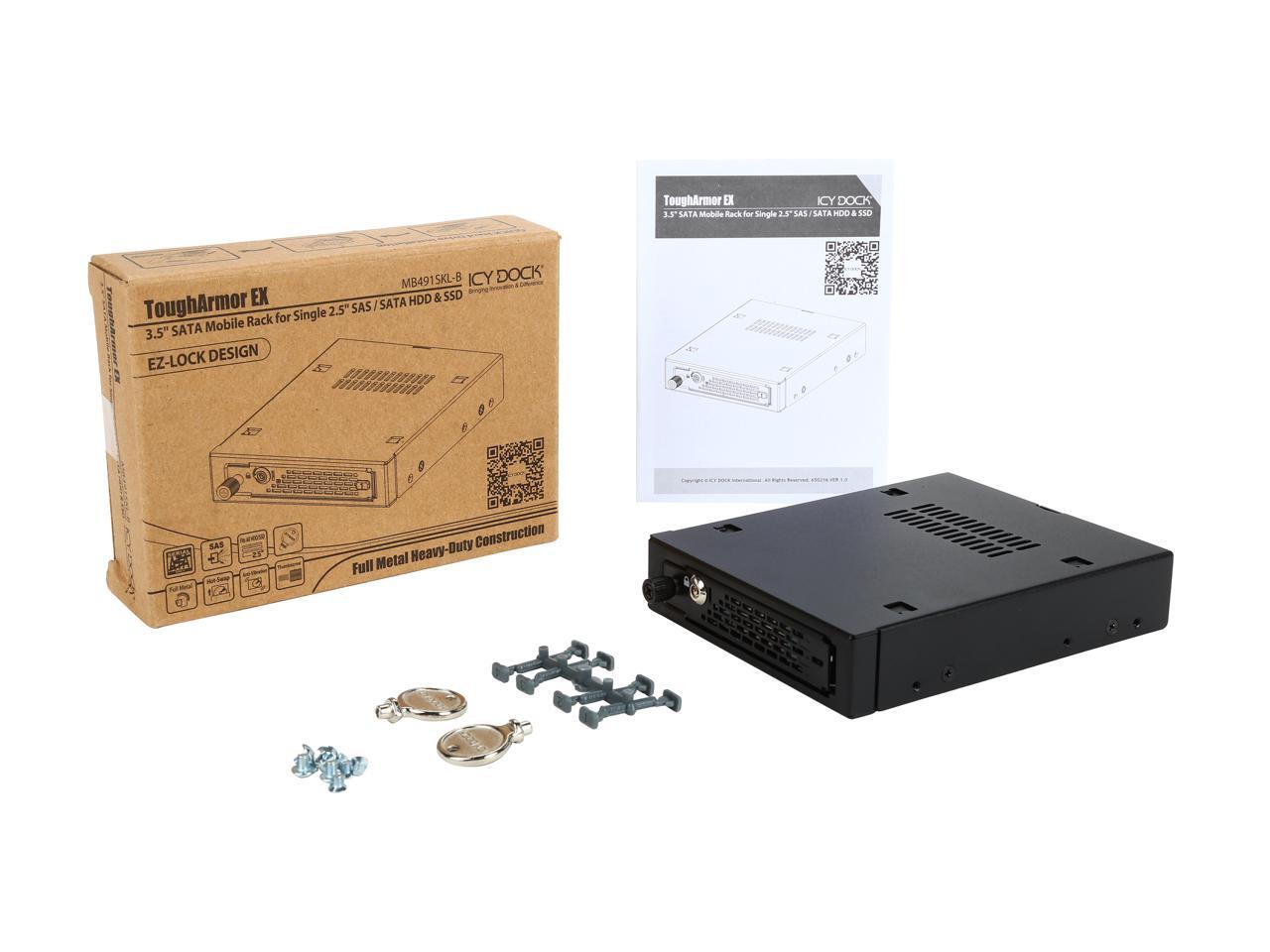 ICY DOCK Industrial Full Metal 2.5 SATA/SAS HDD & SSD Hot Swap Mobile Rack Cage for 3.5 Drive Bay with Key Lock & Thumb Screw - ToughArmor EX MB491SKL-B