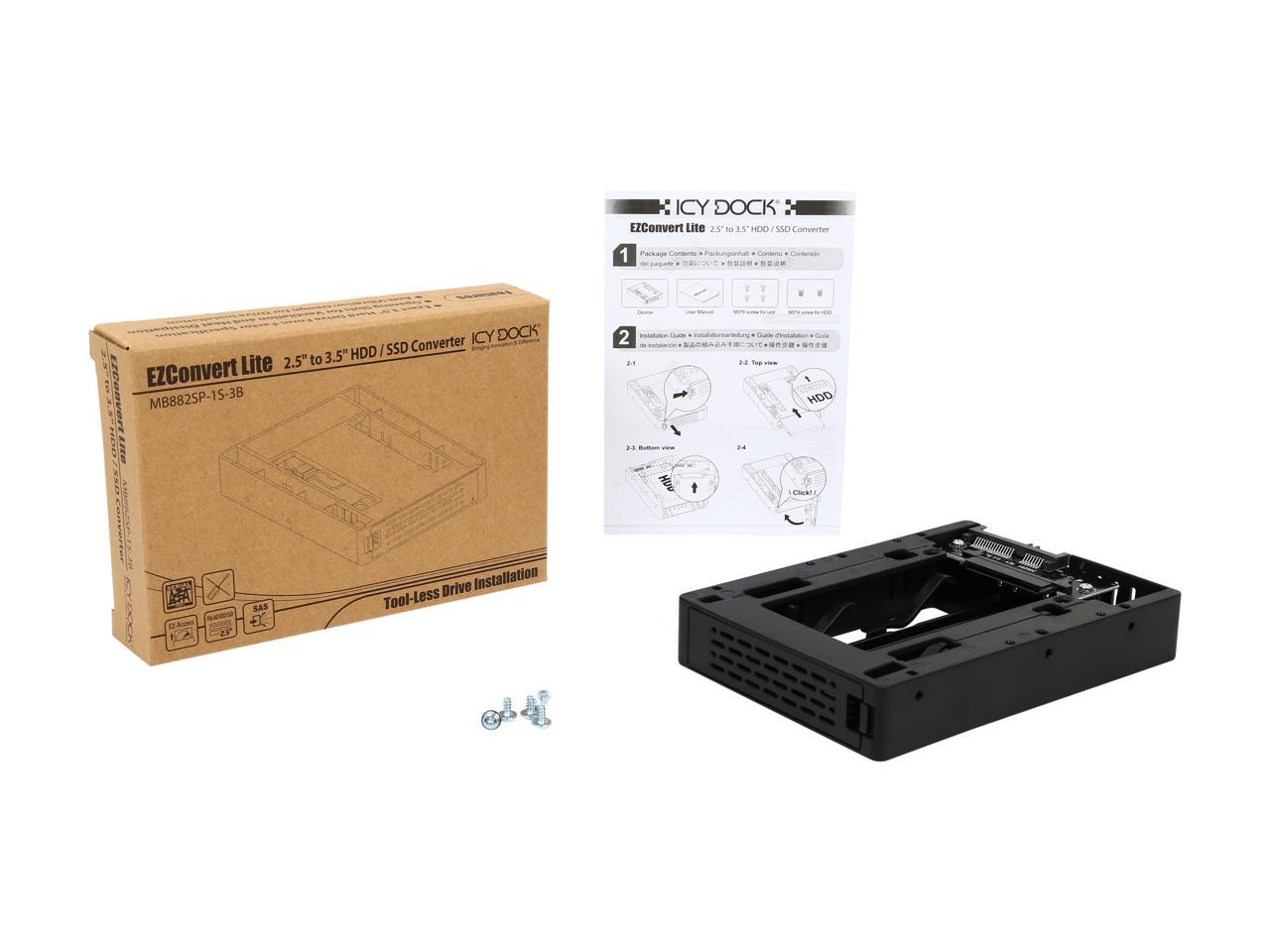 ICY DOCK 2.5" SSD / SATA Hard Drive to Desktop 3.5" SATA Drive Bay Converter Bracket Mounting Kit - EZConvert MB882SP-1S-3B
