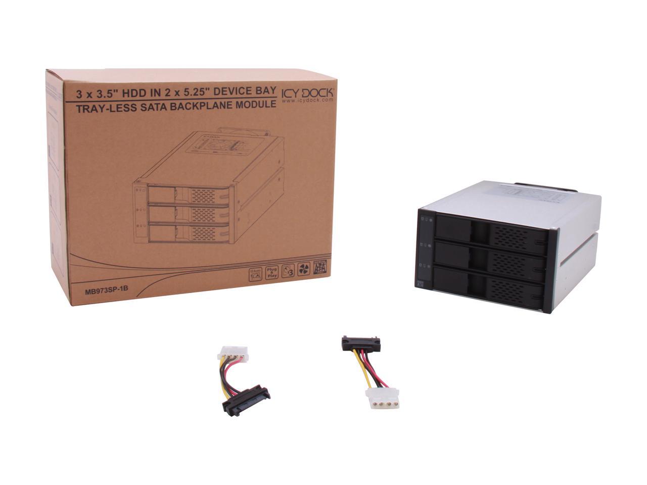 ICY DOCK Tray-less 3 x 3.5" HDD in 2 x 5.25" Bay SAS / SATA Hot Swap Rack / Cage / Module - FlexCage MB973SP-1B