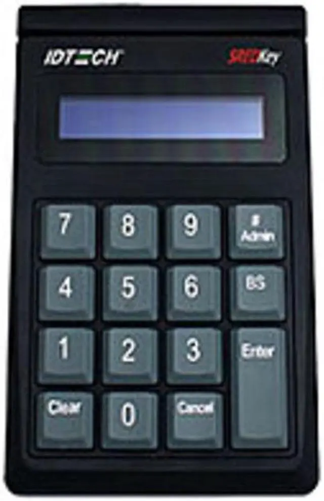 SREDKey is an encrypted key pad with an LCD and an encrypted MagStripe reader that offers retailers a complete and reliable security solution that meets the PCI-PTS certification. This intelligent reader delivers superior reading performance while encrypting sensitive MagStripe and keyed-in data that reduces the scope of PCI-DSS. The SREDKey ensures all data transactions are protected through secure point to point encryption reducing fraud and data compromises. ID TECH's SREDKey ensures secure reading and exchange of data (SRED) to protect the cardholder's account information at the point of acceptance. The SREDKey meets PCI certifications with its encrypted MSR and secure data entry process for protection of non-PIN cardholder data.Encryption: Triple DESEncryption: AESDisplay Screen Type: LCDInterfaces/Ports: USBBuilt-in Devices: Magnetic Stripe ReaderNumber of Keys: 15Color: BlackHeight: 1.5"Width: 3.8"Length: 6.3"Green Compliant: YesGreen Compliance Certificate/Authority: RoHS 2Green Compliance Certificate/Authority: REACHLimited Warranty: 1 Year