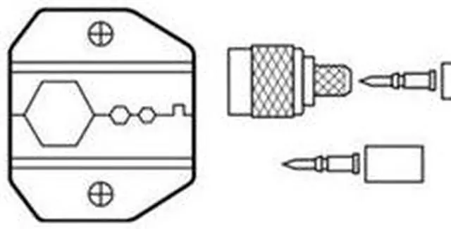 Voice and Data Crimping Die, Compatible Connector Type RG-8/11 Connectors, Compatible Cable Type RG11, Number of Crimping Sizes 2, Connector Color Code Silver, Number of Pieces 2, Maximum Crimping Force 1 ton, Hole Size 0.08 in, 0.1 in, 0.429 in, Compatible with Brand Crimpmaster (TM), Compatible with Manufacturer Model Number 30-506, Compatible with Series N Series, Application Crimp and Compress, Includes -. This item has been restricted from sale in the following state (s): []