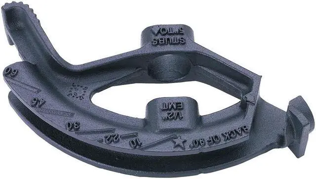 When you need to bend conduit, this Ideal 74-003 Conduit Bender Head is the tool to use. The EMT size of 1 in. makes it perfect for the job. It has a centerline bend radius of 6 37/64 in., which allows you to make precise bends every time. The ductile iron construction means that this bender head will last through repeated use and still retain its shape. This hand conduit bender has markings on the side so you can measure the distance between two points accurately. The pedal on this tool makes it easy to open and close, so you can work faster without putting too much strain on your hands or fingers.