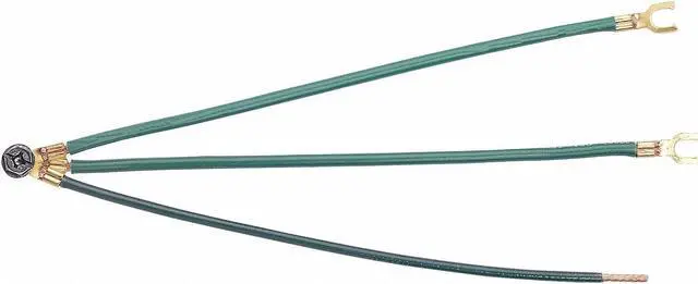Grounding Tail, Stranded, Connector Type 3-Wire Joined w/ #10 Ring and Ground Screw w/ 1 Pigtail and 2 #10 Fork Tails, Color Green, Description/Special Features 12 AWG Stranded Wire, Wire Type Copper, Length 7.75 In., Package Quantity 25. This item has been restricted from sale in the following state (s): []