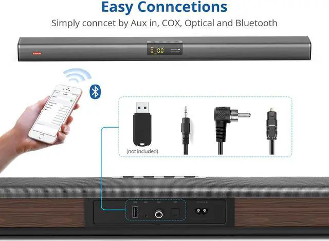 Optical, Aux, Coaxial, USB, compatible with TVs, Playstation, Projectors, Blu-ray players, Amplifiers and more!