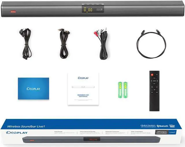 iDeaPlay Live1 Wireless Sound Bar Bluetooth Soundbar Built-in 4 Speakers with Dedicated Amplifiers 50W RMS