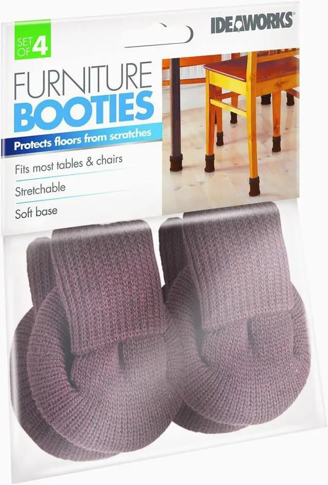 IdeaWorks - Furniture Sofa Chair Legs Booties! Keep your floors smooth and scratch-free from furniture legs with the furniture booties. The soft polyester and spandex blends provide soft cushioning between furniture and floor allowing chairs to slide on the floor both quickly and quietly. The stretchable material allows a one-size-fits-most capability for tables and chairs fitting most furniture leg shapes. Easy to mix and match. Fashionable colors and attractive design see size chart in photos while its stylish design allows them to easily coordinate with most furniture legs. 0.12 lb one size fits most - Set of 4 Brown