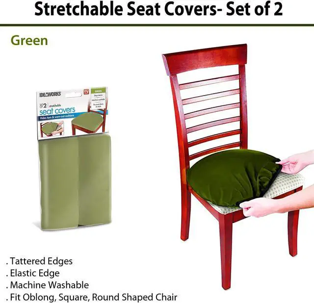 Ideaworks - Stretchable Seat Covers offer a versatile solution for various seating needs. Designed to fit office dining room patio chairs and bar stools these covers feature an elastic edge for a snug and secure fit. The set includes two covers in a refreshing green color adding a vibrant touch to your space. Easily washable these covers combine practicality with style providing an effortless way to update and protect your seating arrangements with comfort and convenience. - Set of 2- Green