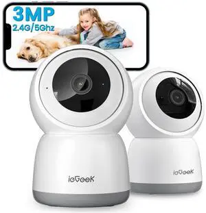 ieGeek Indoor Camera, 2K Cameras for Home Security, 5G Security Camera Indoor, 360 Pet/Dog/Baby Camera with Phone App, AI Tracking, 2-Way Audio, Night Vision, 24/7 SD Card Storage, Alexa (2 Pack)
