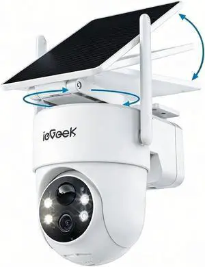 ieGeek Solar Security Cameras Wireless Outdoor, WiFi Surveillance Camera with Solar Panel & 9000mAh Battery, 24/7 Recording, 360° Panoramic View, Auto Tracking, 2K Color Night Vision, No Subscription