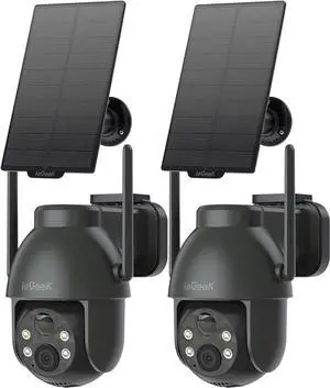 ieGeek Solar Camera Outdoor Wireless, 2K WiFi Cameras for Home Security System, Battery Powered Surveillance Cam with 360°PTZ Color Night Vision, PIR Motion Sensor, Compatible with Alexa (2 Pack)