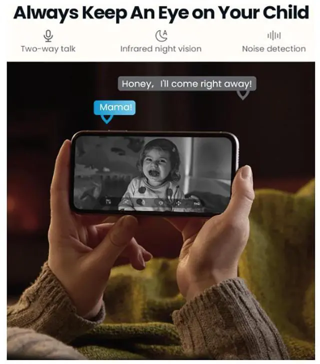 See Every Detail, Day & Night Our indoor cameras for home let you monitor every corner of your house in stunning 3MP and 2K resolution, even at night with advanced night vision. With this reliable baby camera for room, you can watch your baby take their first steps in the living room or peacefully sleep in their crib