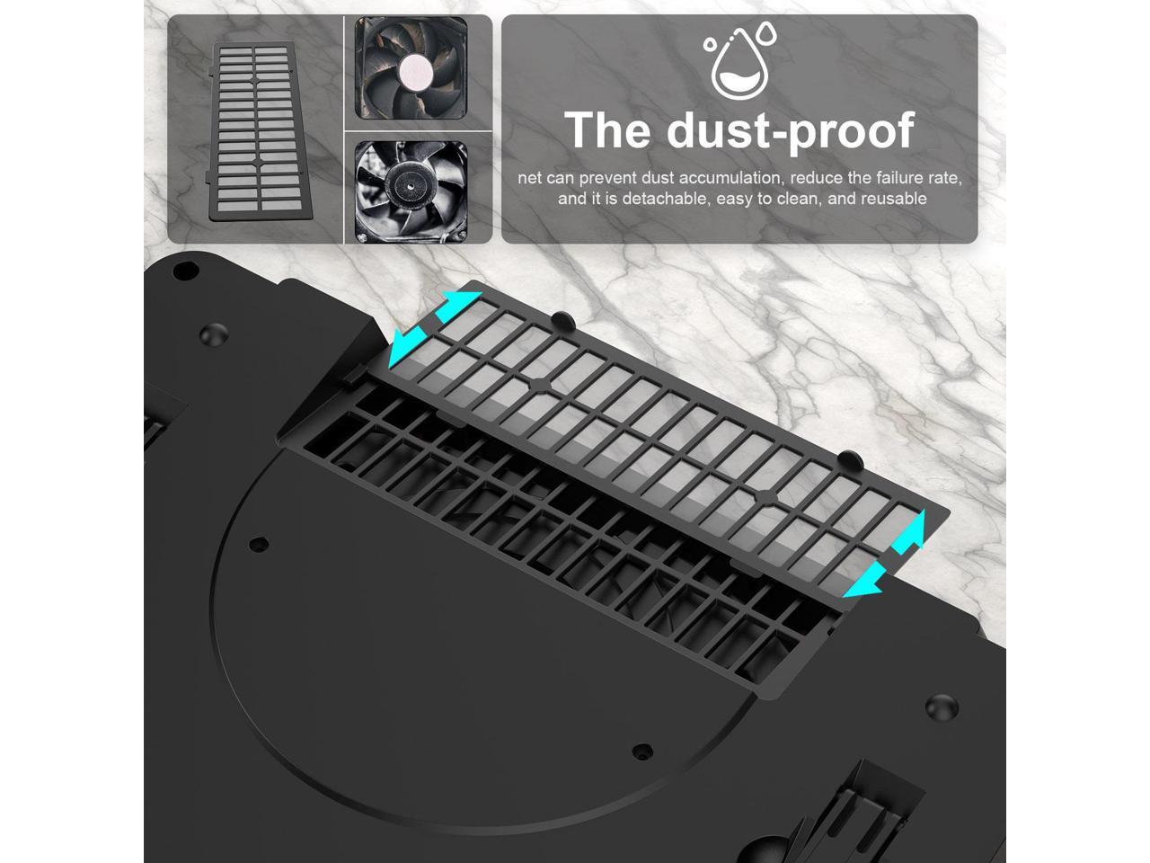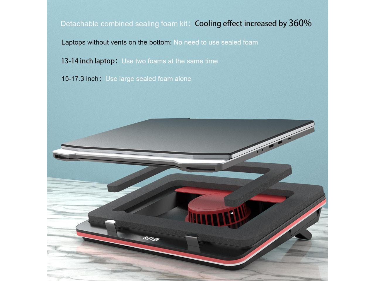 Two cores:Industrial-grade turbofan(5000RPM)+ combined sealed foam, creating a powerful cooling effect, and it is 360-degree undifferentiated cooling, no matter where the cooling hole of your laptop is, the same cooling effect can be obtained
