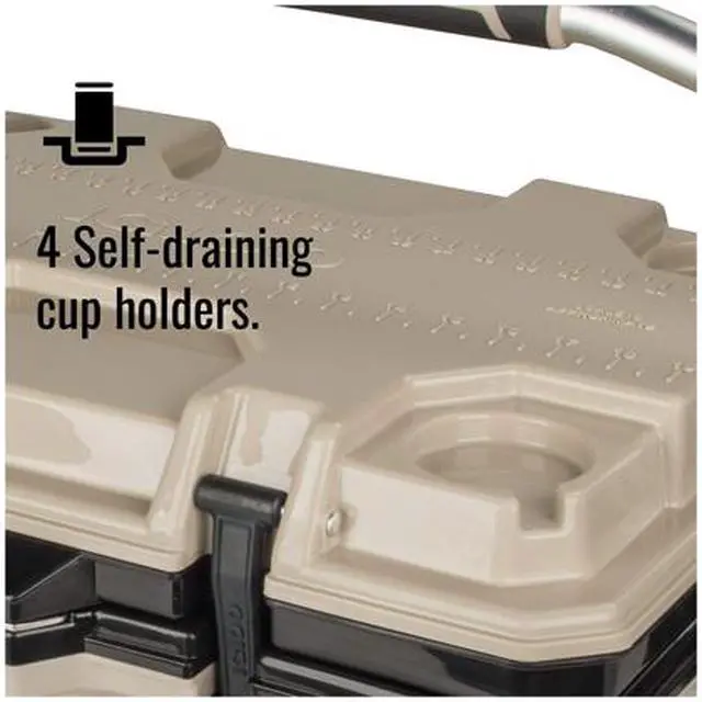 - 4 self-draining cup holders built into the lid to keep your drinks secure and handy