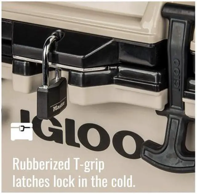 - Lockable lid loops for maximum security with a standard size lock also allow extra gear to be tied to the cooler for easy transport; includes stainless steel locking plate and bottle opener