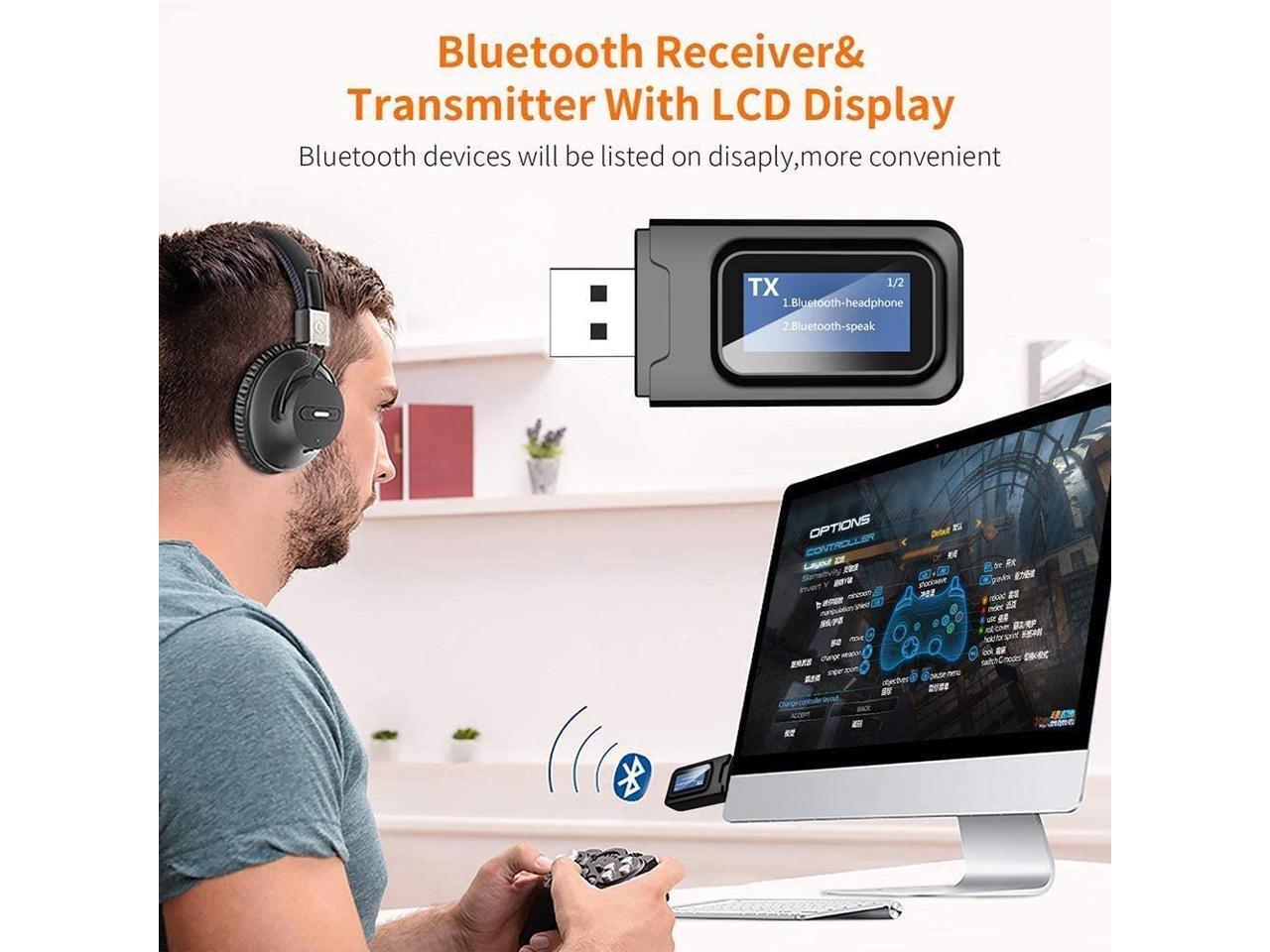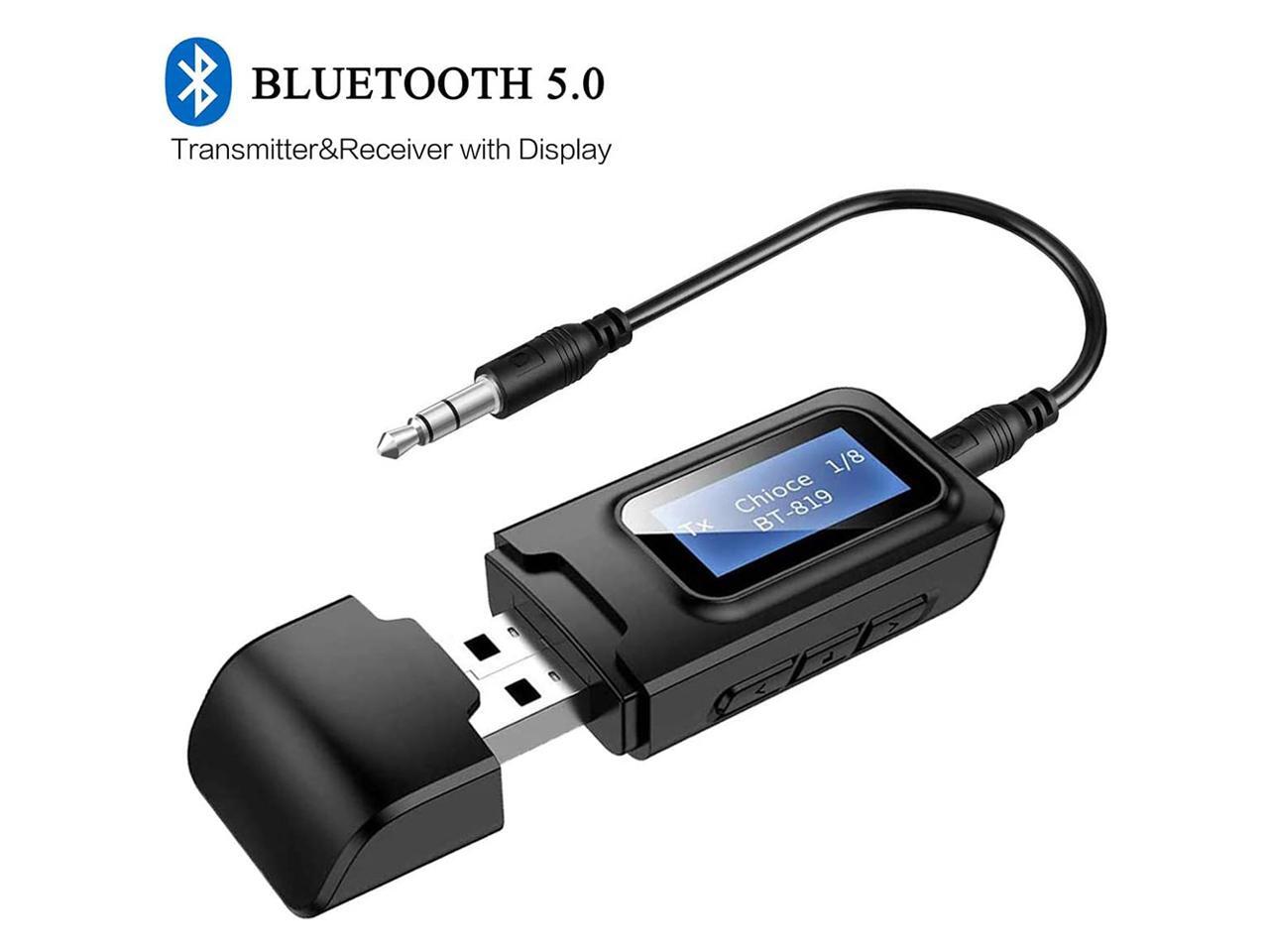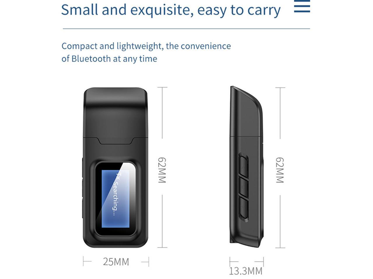 USB Bluetooth 5.0 Audio Transmitter Receiver with LCD Display, 2 in 1 Portable Visualization Bluetooth Adapter,3.5MM Wireless Bluetooth Adapter for PC,TV,Wired Speaker,Headphones and Car