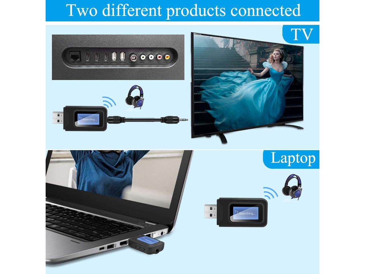 - [2-in-1 Transmitter Receiver] USB Bluetooth 5.0 Audio Transmitter Receiver can transmit stereo Audio from your non-Bluetooth Audio sources such as TV, MP3, CD player, PC or book Reader to your Bluetooth-enabled headphones, speaker or other receiver,.
