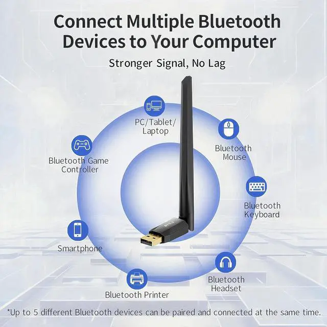 • [Connect 7 Devices Simultaneously] Supports connecting 7 different types of devices at the same time, and only one Bluetooth device of the same type can be used, such as Bluetooth speakers, keyboards, headsets, mice etc..