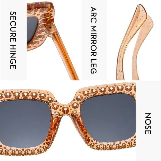 • FASHION DESIGNThe classic square frame is surrounded by sparkling crystal. Crystal Decorated Frame Design Trendy and stylish design makes you more outstanding. They are suitable for any face and comfortable to wear.