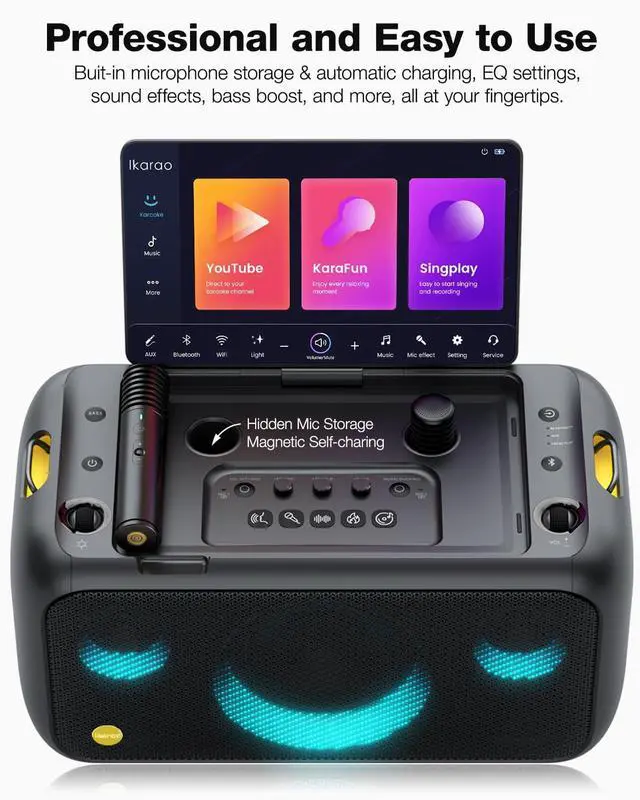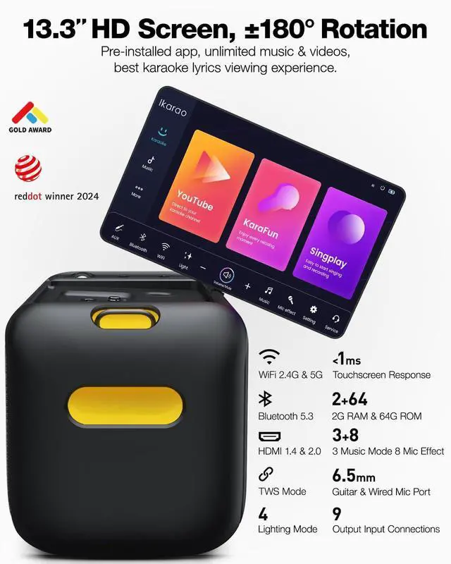 Yes, Break X1 with built-in Android 13 streaming karaoke system featuring a 13.3" HD screen, pre-installed apps like YouTube, Karafun, Spotify, connect to WiFi and log in to enjoy unlimited music and videos.