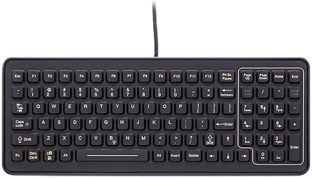 iKey's SlimKey SLK-101-M keyboard provides full-size versatility in a rugged, compact design. It features red LED backlit keys for use in areas with minimal lighting. Engineered for NEMA 4X protection from dust, water and corrosive liquids, the SlimKey SLK-101-M is ideal for use in industrial, medical and material handling applications. Its large numeric pads allow for easy data entry, while its robust polycarbonate cases have built-in mounting holes for convenient vehicle use. Features: 10- Key Numeric Pad 12 Function Keys Built-In Mounting Holes Integrated Backlighting MS Windows Function Keys USB and PS/2 configurations available.