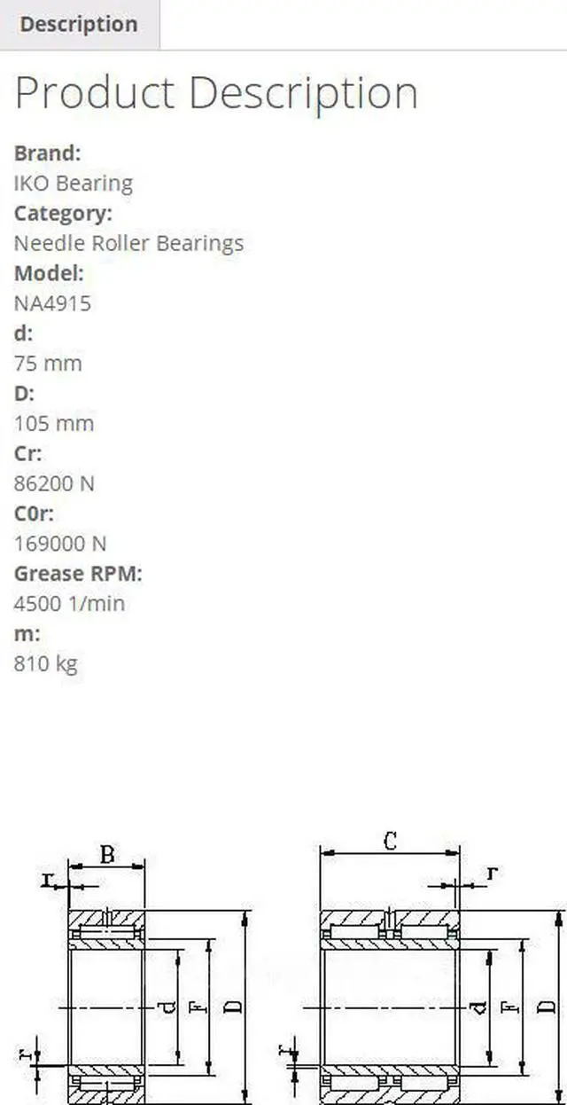 • IKO NA4915 Needle Roller Bearings 75x105x30mm