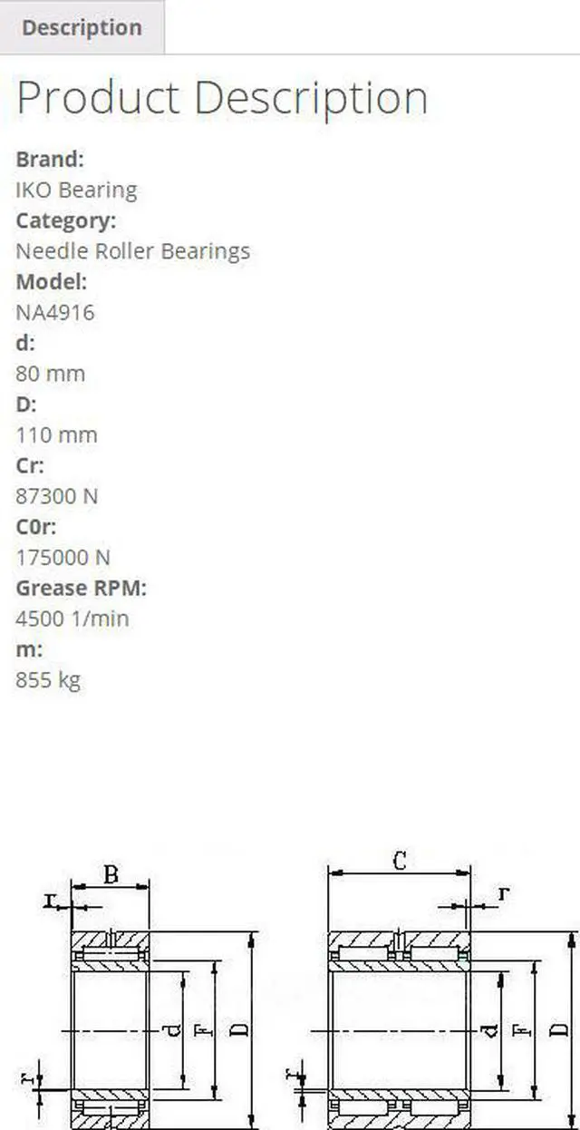 • IKO NA4916 Needle Roller Bearings 80x110x30mm