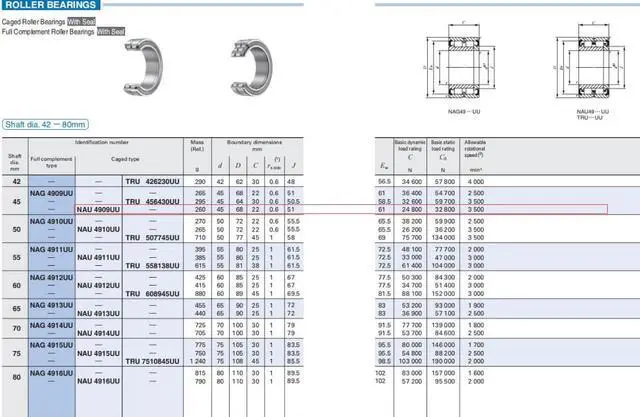 IKO NAU4909UU Cylindrical Roller Bearings,With Seal 68x45x22mm