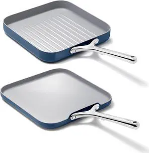 Caraway Griddle Pan & Grill Pan Duo - Non-Stick Ceramic Coated - Non Toxic, PTFE & PFOA Free - Oven Safe & Compatible with All Stovetops Navy