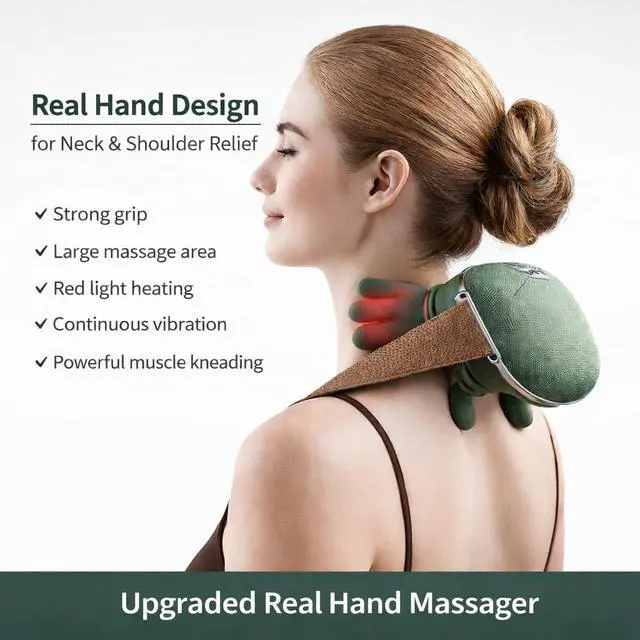 Heated Neck and Shoulder Massager with Finger-Like Kneading Nodes, Deep Tissue Massage for Shoulder & Back Muscle Tension, Green