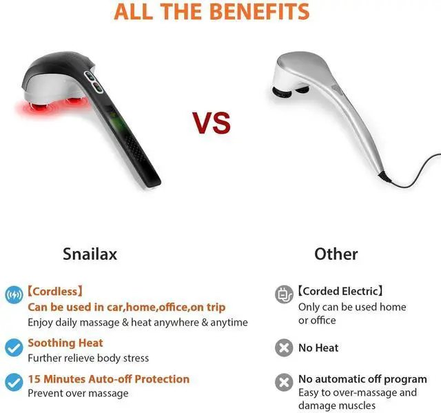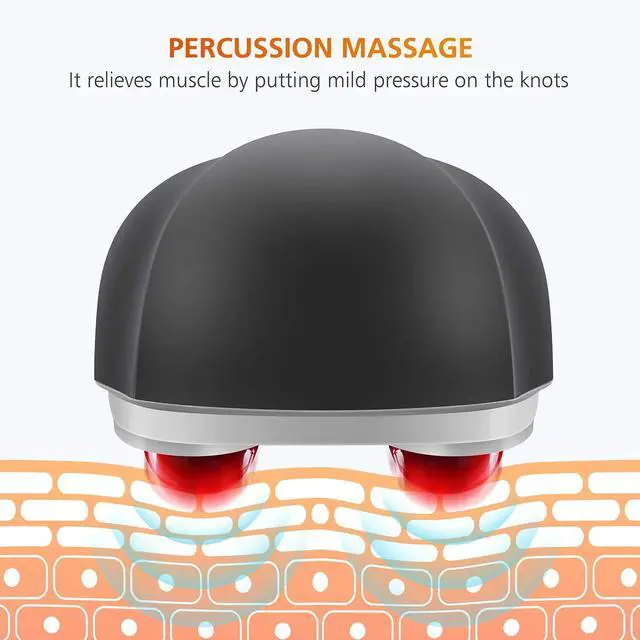Percussion massager features dual heads operate at up to 3200 pulses per minute to deliver more effective vibrating percussion massage.(Note:PERCUSSION is similar to VIBRATION, but NOT a deep kneading shiatsu!)