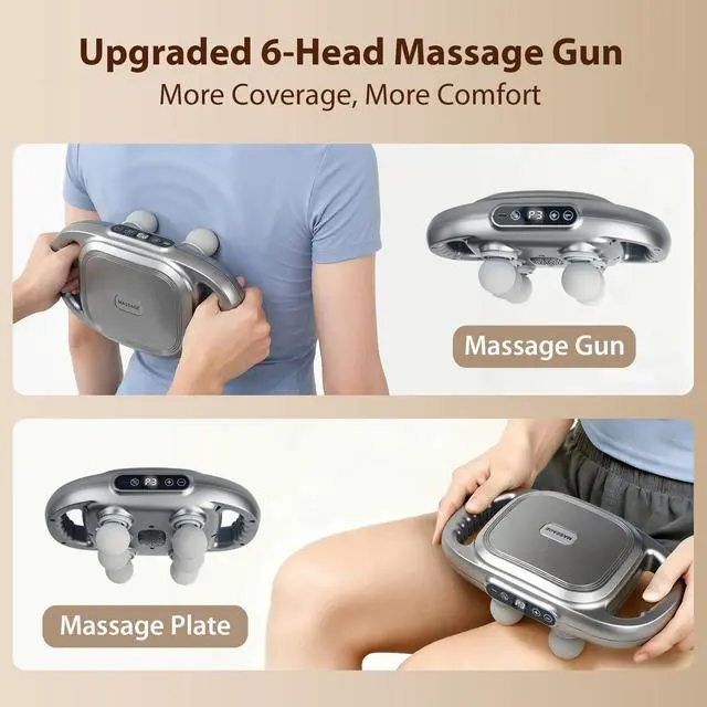 GrnPeak Upgrade 6 Head Massager Gun,Back Massager,Neck & Shoulder Massager