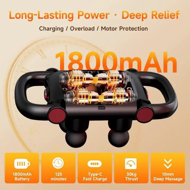 • [Ultra-Quiet & Long Battery Life]Equipped with Type-C fast charging and a high-capacity battery, this massager ensures up to 120 minutes of continuous use. The high-quality motor features triple noise reduction, sound insulation, and shock absorption, maintaining an ultra-quiet performance with a noise level of just 45dB, making it suitable for use at home, in the office, or at the gym.