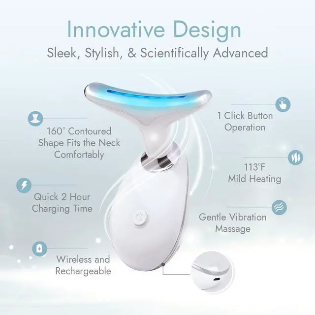 Ergonomic, Portable & Cordless Design - Sleek, lightweight, and cordless design contours comfortably to your face and neck. Its portability makes it ideal for at-home use or travel, offering a convenient beauty boost anytime, anywhere