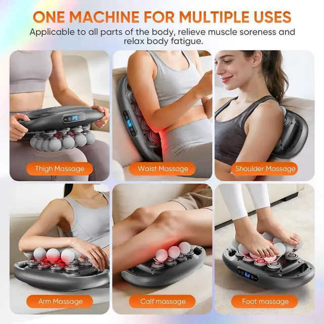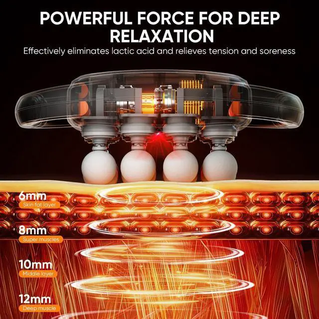 Precise Deep Muscle Relief: The 16 head massage gun deep tissue, with a high-performance pro motor, penetrates superficial muscles to fascia and deep muscle groups, resolving knots and stiffness. It eases tension/pain for athletes with post-workout lactic acid and office workers with shoulder/back soreness from prolonged sitting, Massage tools with built-in light - therapy provide the added benefit of promoting faster recovery during deep tissue massages.