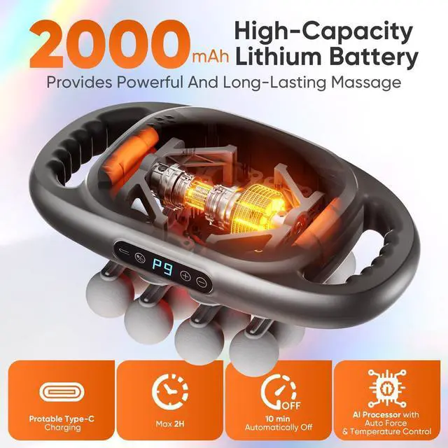 Quiet & Long-Lasting: The back massager for pain relief deep tissue has a 2000mAh battery, 3hrs charge for 6hrs use (During charging, the Digital display will show the number 88 and flash regularly. When fully charged, the Digital display will remain constantly lit with the number 88). 35-45dB (soft talk volume), no disturbance at home/gym/office.