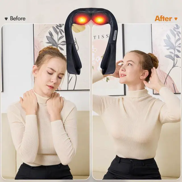 Shoulder Massage Neck and shoulder massager features 3D massage heads that precisely target the shoulder and neck area, suitable for shoulder massage, neck massage, back massage, lower back massage, and leg massage. This neck massager is especially ideal after a long day at work