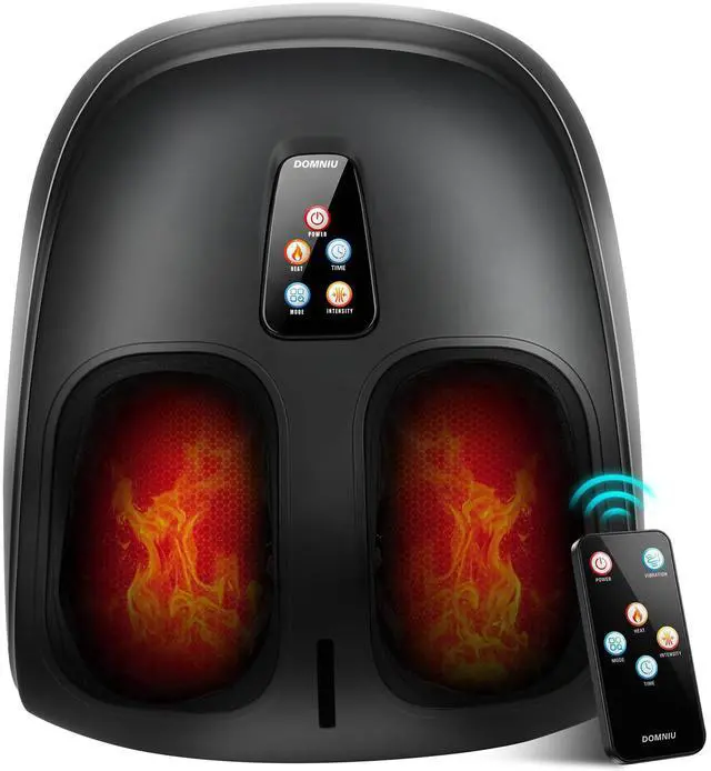 4 Programmable Modes & Soothing Heat: Clockwise Kneading+Compression, Counterclockwise Kneading+Compression, Sole Kneading, and Air Compression. The adjustable infrared heat (up to 131°F) warms muscles for deeper relaxation and tension relief. A cordless remote allows easy control from your couch or bed.