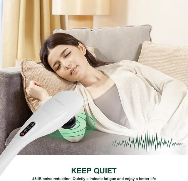 The MEGAWISE Electric Handheld Deep Percussion Massager is made out of high-quality plastic and features a powerful motor. This massager can effectively promote circulation; it also helps swelling and pain in your shoulders, neck, back, joints, feet, legs, and waist. Use this tool to help with muscle fatigue and soreness.