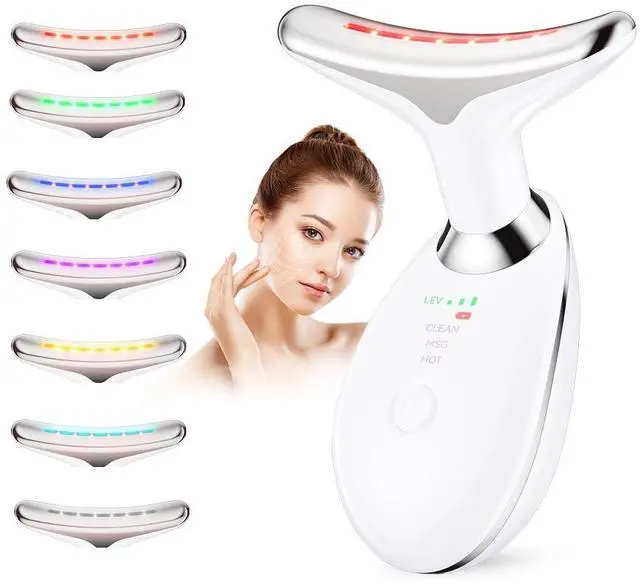 Neck Massager, 7-in-1 Multifunctional Facial Massager, Face Sculpting Tool for Skin Care, At-Home Face Tool with Vibration and Thermal, White