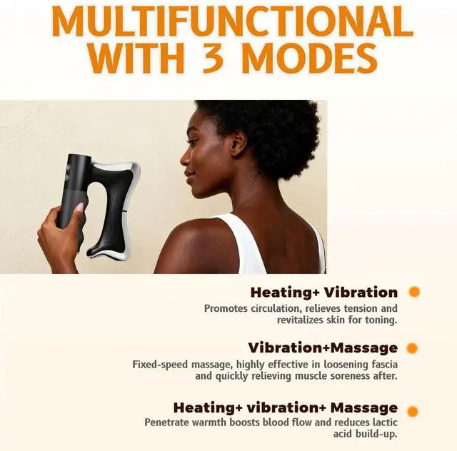 All-in-One Heating Scraping Tool: The latest 3-in-1 muscle scraper combines massage, heating, and vibration. This triple-action technology relieves muscle tension, promotes circulation, alleviates pain, and delivers comprehensive recovery.