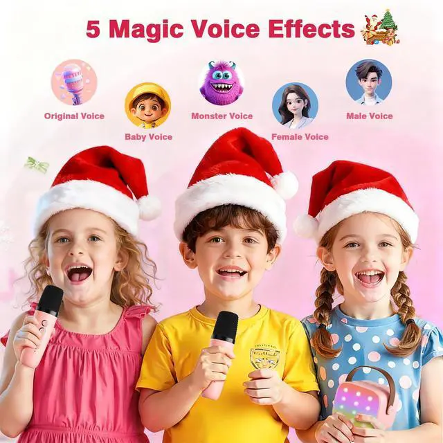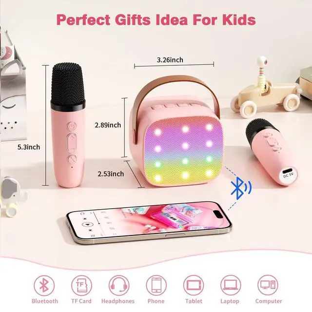 Mini Karaoke Machine with 2 Wireless Microphones, 2026 TOP Kids Portable Bluetooth Karaoke Machine for 3, 4, 5, 6, 7, 8, 9,10,11,12+Year Old, Christmas Birthday Gifts for Girls Boys Adults Home Party