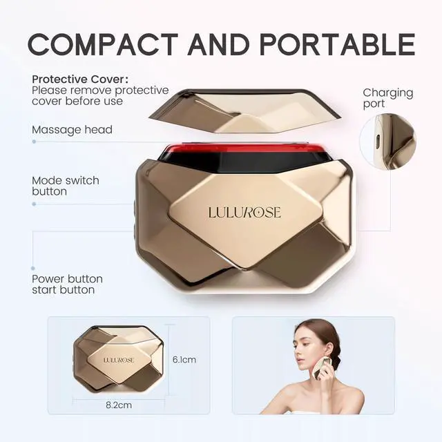 5-in-1 LULUOSE Facial Device: Offers Deep and Regular modes with Heat, Cold, Vibration, Red Light, and Blue Light. A handheld, non-prescription device that helps improve skin and reduce face and neck wrinkles.